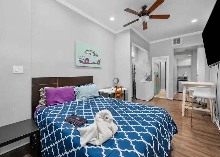 **Welcome to Trendy Montrose 1Br Apartment** - a vibrant haven nestled in the heart of the artistic Montrose neighborhood of Houston. This lively area is renowned for its quirky gay bars, vintage boutiques, and an array of dining options that evoke the city's dynamic spirit. Drawing inspiration from its eclectic surroundings, the Trendy Montrose 1Br Apartment stands as a unique retreat tailored for those seeking both comfort and a touch of local culture.